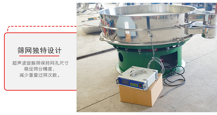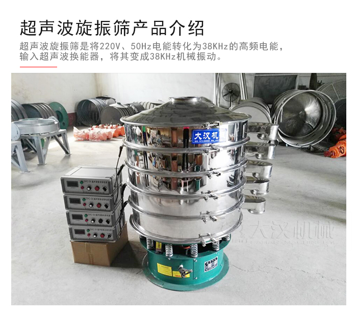 產(chǎn)品介紹:超聲波旋振篩是將220V、50Hz電能轉(zhuǎn)化為38KHz的高頻電能,輸入超聲波換能器,將其變成38KHz機(jī)械振動(dòng),從而達(dá)到篩分和清網(wǎng)的目地,使微細(xì)粉篩分成為易事。