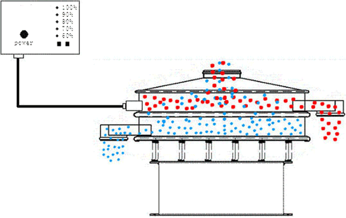 超聲波旋振篩是將220V、50Hz電能轉(zhuǎn)化為38KHz的高頻電能,輸入超聲波換能器,將其變成38KHz機(jī)械振動(dòng),從而達(dá)到篩分和清網(wǎng)的目地,使微細(xì)粉篩分成為易事。
