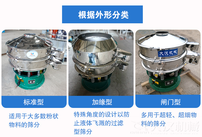 三、閘門型:則是在普通型旋振篩出料口處加裝閘門,主要是在篩分物料中的雜質(zhì)時(shí)使用,通過關(guān)閉出料口使物料進(jìn)行充分篩分。用通過控制閘門的開合以達(dá)到良好篩分的目的,這種篩分作業(yè)多用于超輕、超細(xì)物料的篩分,如中藥粉、花粉等行業(yè)。