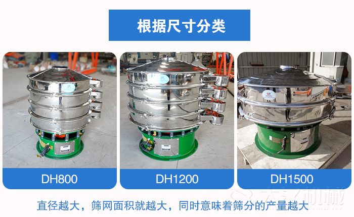 選擇與自己產(chǎn)量適配的旋振篩十分重要,合適大小的旋振篩能夠?yàn)樯a(chǎn)提供更高的效率。目前市場(chǎng)上的旋振篩型號(hào)眾多,也比較齊全,常見直徑尺寸的有600mm,800mm,1000mm,1200mm,1500mm,1800mm和2000mm不等。