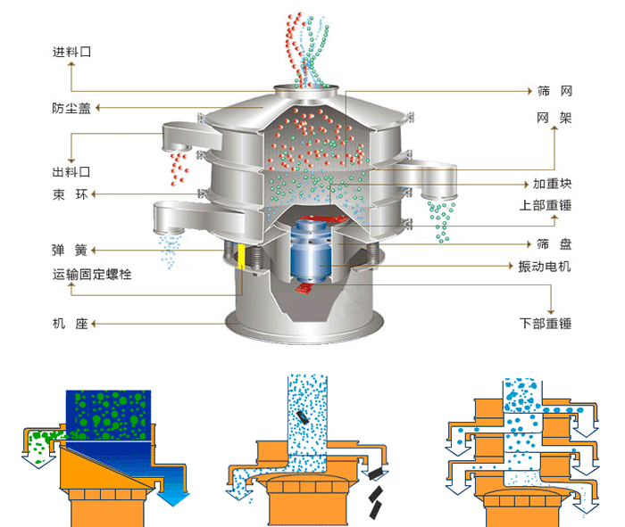 篩分:把顆粒,粉末分成大小不同的粒子段,可同時用多層篩網,連續篩分選多個級別并能控制較窄的力度范圍。