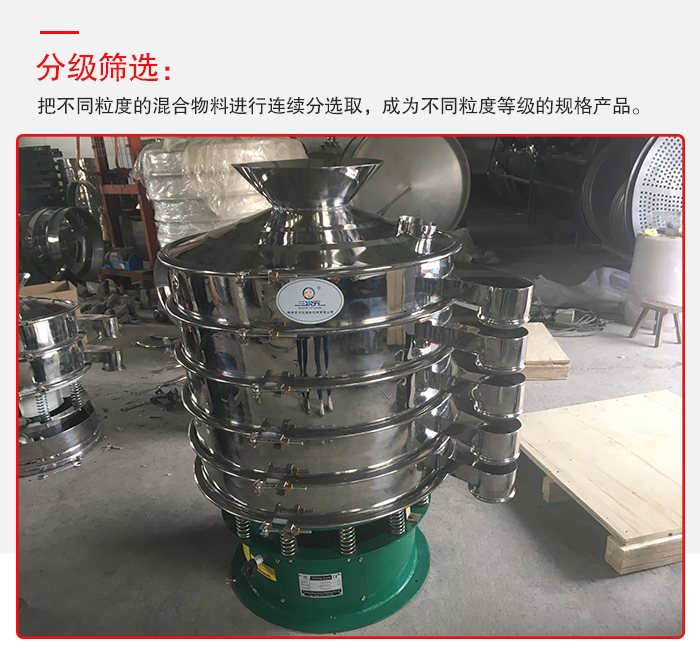 分級篩選:把不同粒度的混合物料進行連續分選取,成為不同粒度等級的規格產品。