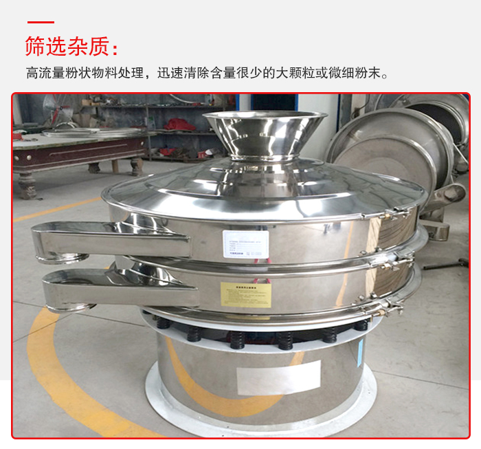 篩選雜質:高流量粉狀物料處理,迅速清除含量很少的大顆粒或微細粉末。