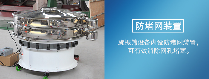 3,旋振篩設備內設防堵網裝置,可有效消除網孔堵塞。