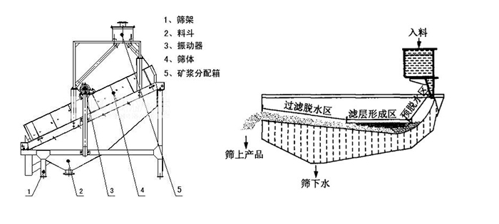 篩面形式不同,脫水篩篩面多為向上爬坡,有利于干排;而一般的振動篩是水平或者向下的篩面,以利于出料。