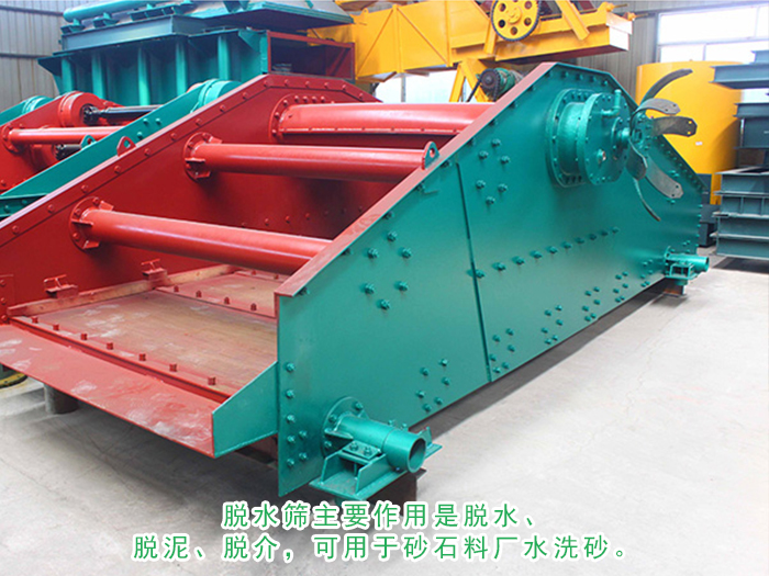 脫水篩主要作用是脫水、脫泥、脫介,可用于砂石料廠水洗砂、選煤廠煤泥回收、選礦廠尾礦干排等,因此也叫砂石脫水篩、礦用脫水篩、煤泥脫水篩、尾礦干排篩、高頻脫水篩等。
